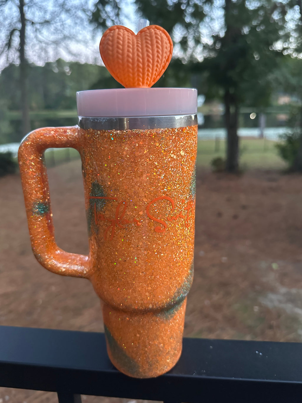 30 oz stainless steel Stanley, done up like the Showgirl that she is! Also includes a Tumbler Topper with an orange heart!