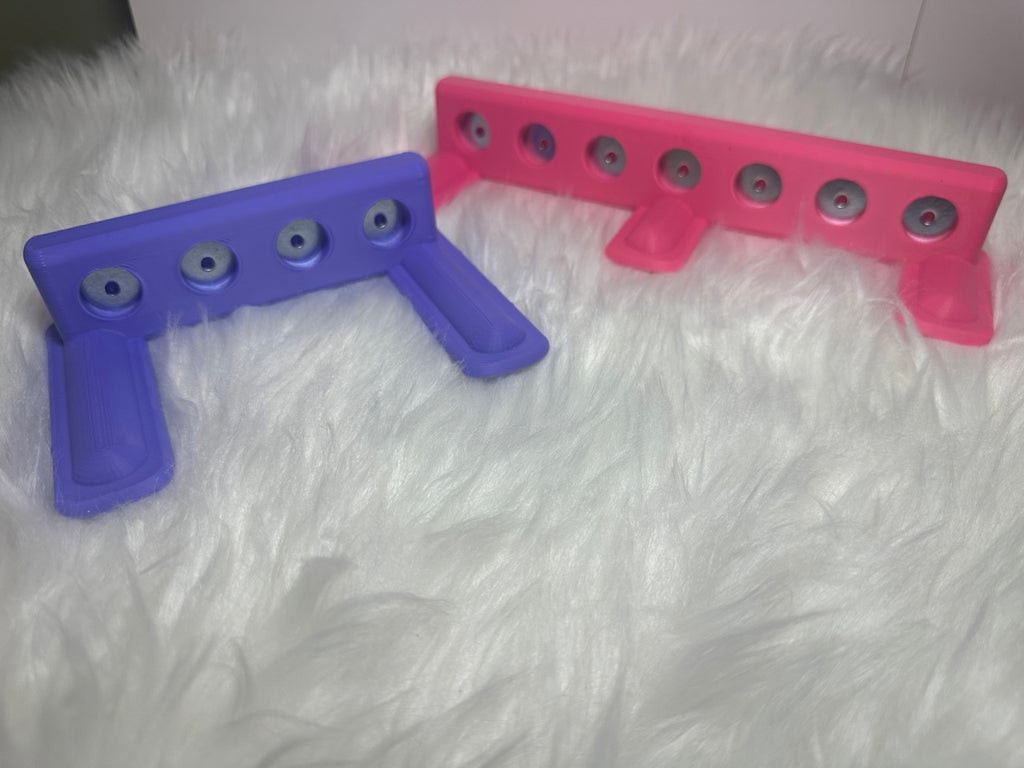 You only have two hands - so let us help out with the Perfect Pen Holder. Angled at just the right angle to hold your pens under a variety of UV light sources. This angle slides right into the CCDIY and Resin Rockers lamps! Your choice of a 4 or a 7 pen holder. Also pick a color that suits you as well! Works with the Basic and Deluxe Pen Spinner Kits from SWS Custom Designs.